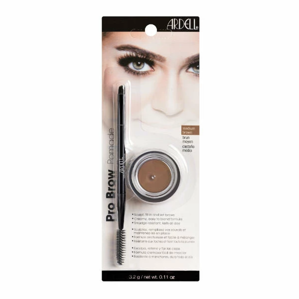 Sculpt, fill-in and set brows in place all day with just one product! Ardell’s Brow Pomade combines the work of a pencil, powder and gel into one easy-to-use pomade. The formula is light, highly pigmented, glides on smoothly and blends effortlessly. A little goes a long way and lasts all day! Use the angled tip brush to create clean, precise lines and for easy shading.