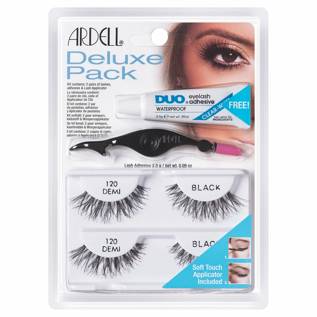 Filled with everything you need to glam your eyes up in just a few minutes, this incredible Ardell Deluxe Pack of Lashes in style 120 Black is perfect for first-time falsies wearers or those that love a great deal on their lashes! Offering a graduated length for a glamorous look, as well as a touch of volume and texture, these lovely lashes are ideal for all eye shapes and sizes.