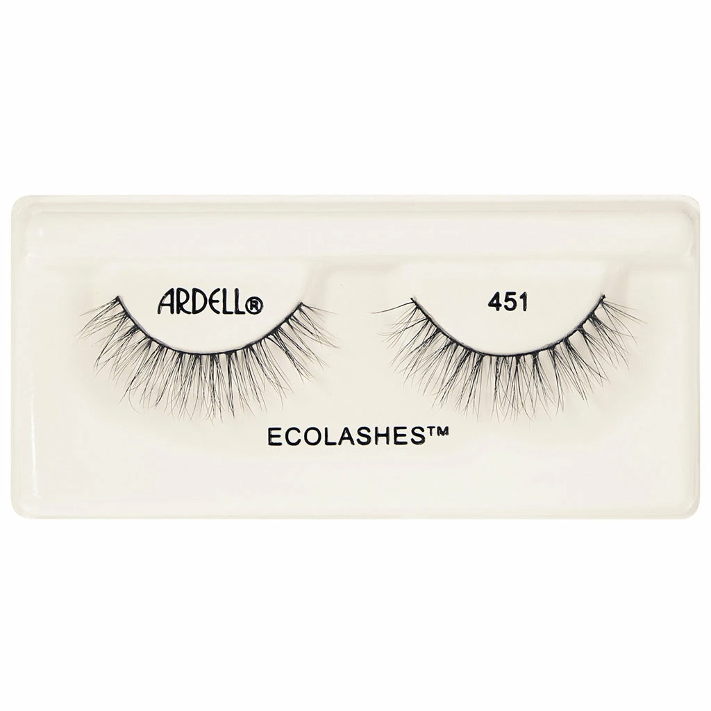Ardell Eco Lashes in style 451 boast a rounded design that awakens your eyes once applied! Composed from wispy natural fibers that have been evenly staggered along the lash band, offering a soft and natural flutter of light volume. Paired with an organic cotton lash band for pure comfort.