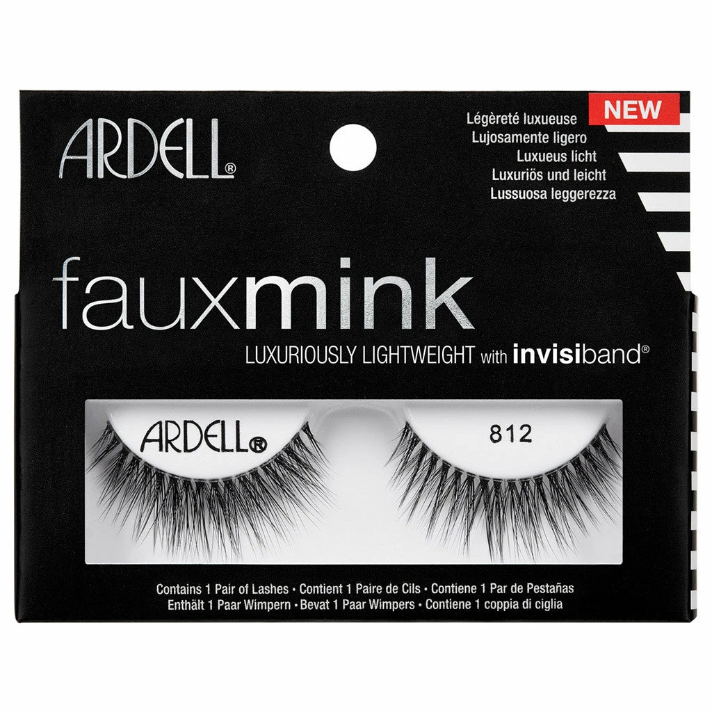Ardell Faux Mink Lashes in style 812 offer the latest in lash technology. Expertly designed to be luxuriously lightweight for a comfortable, natural feel; these high quality lashes offer a stunning enhancement. The invisible band allows for an undetectable application, and the fine, soft lash strands are beautifully layered and criss-crossed to achieve subtle volume and a flawless, textured finish.