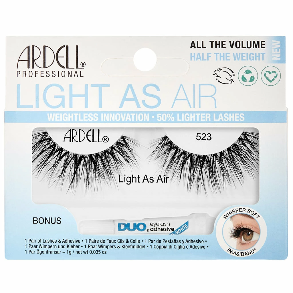 Ardell Light As Air Lashes in style 523 are Ardell’s latest innovation! Offering a weightless feel once applied, these lashes are also incredibly soft. Ardell Light As Air Lashes in style 523 are the cherry on top for any makeup look. These false lashes will still provide all the drama, volume and length. Style 523 also has an invisible band, ensuring they blend perfectly with your natural lashes.