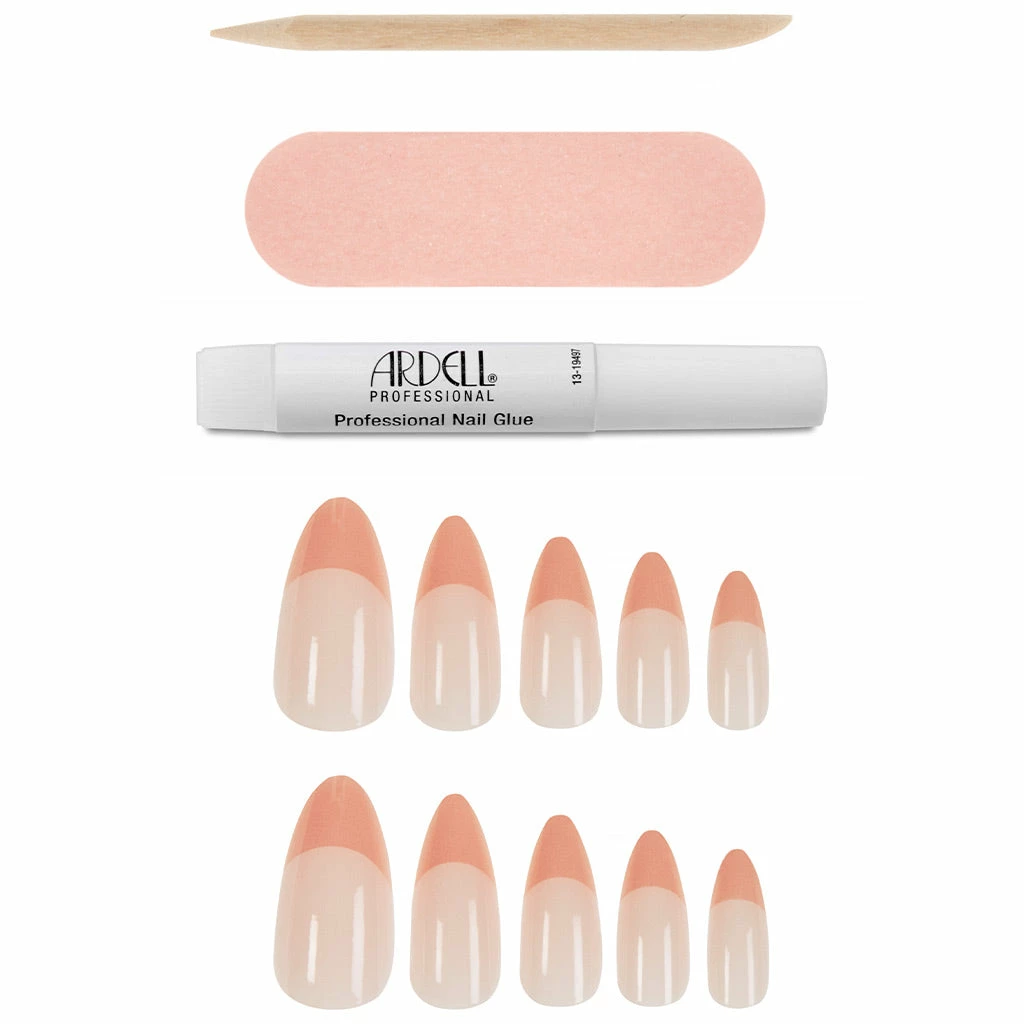 Classic, elegant and timeless! AÂ French manicure is now something you can easily create at home with these Nude French false nails from Ardell. Nude shades of white, pink and peach ensure these nails perfectly match your skin tone and look just like the real thing. The longer length makes them easier to apply, while the elegant stiletto shape adds that extra look of French chic that’s perfect for any outfit or occasion.