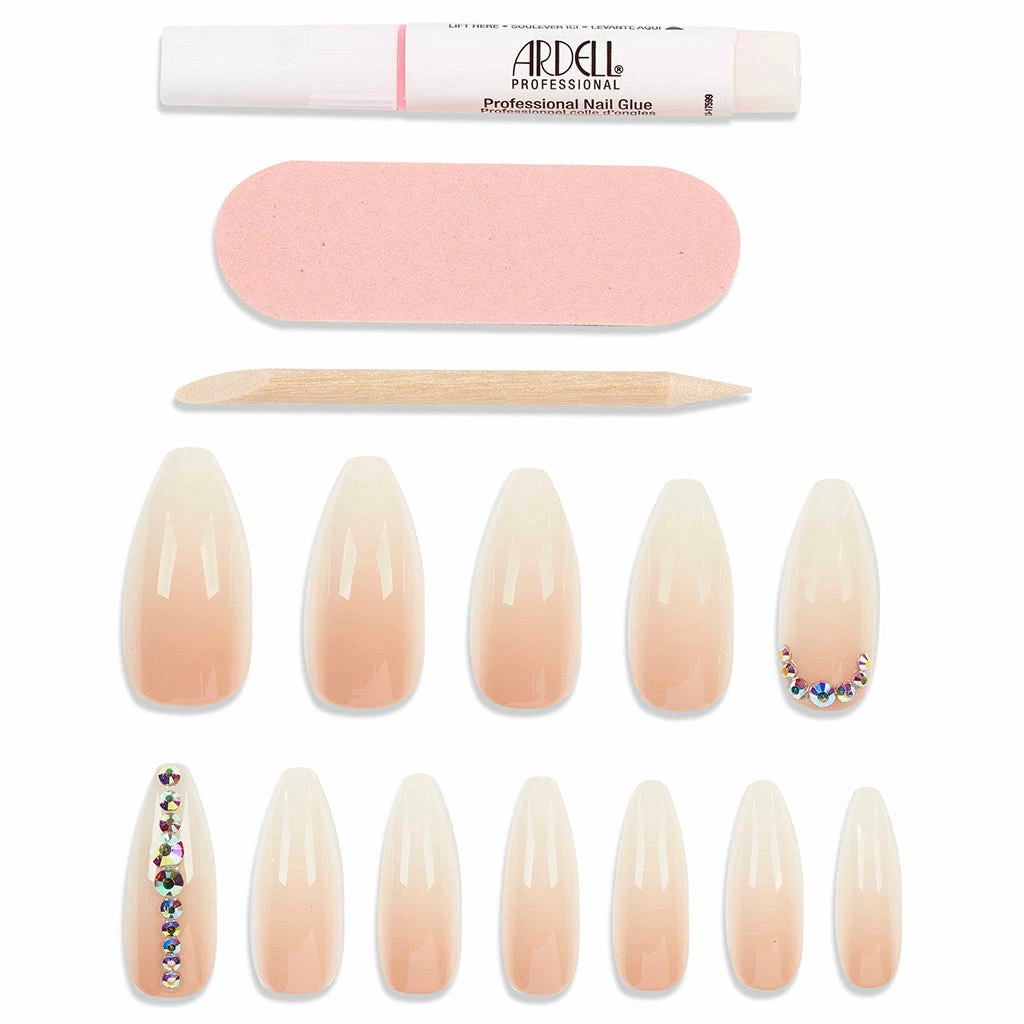 If your outfit needs a little splash of colour and you want to show off your adventurous side, then these Nude Light Crystals false nails from Ardell are just what you need! The long length and classic stiletto shape make them simple to apply, while the elegant combination of nude pink shades matches your natural nails and just enough crystals to allow you to wear these when you want some extra style or colour with no fuss.