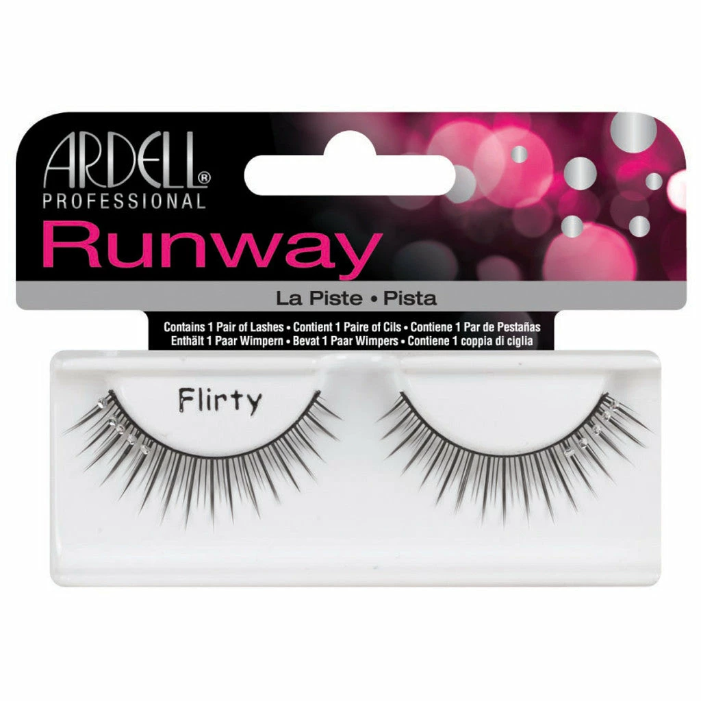 Ardell Runway Lashes in style Flirty offer gorgeous, wearable length. This lash has a graduated finish that elongates the eyes creating that flirty cat-eye look that everyone loves! The outer corner of the lash is decorated with five small silver gems, adding a glamorous finish to complete any makeup look.