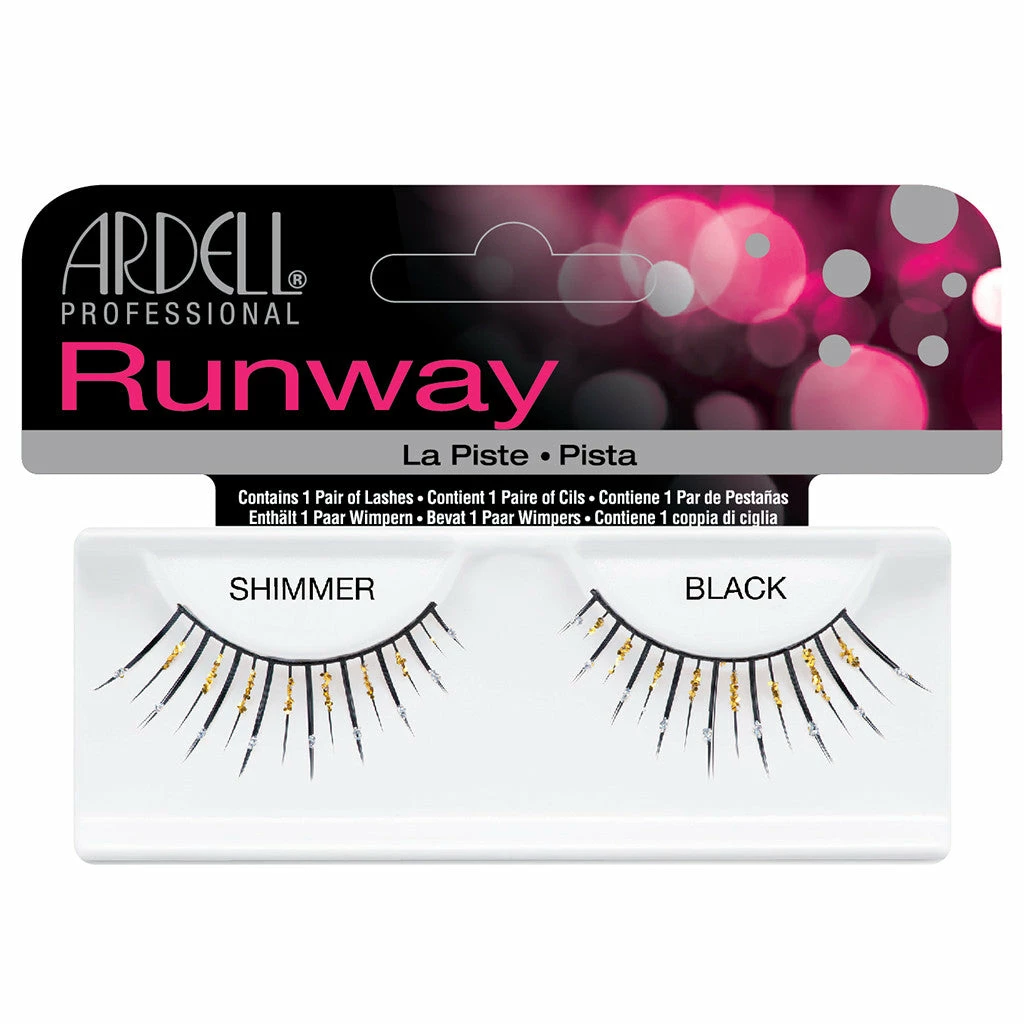 Ardell Runway Lashes in style Shimmer are the ultimate party lash. This gorgeous style offers long lashes with a twist. The start of the lash has sections of gold shimmer whilst the tips of the lashes have silver shimmer. The different lash lengths and spaces in between the clusters of hairs makes for a more natural look, with that touch of shimmer perfect for any special occasion.