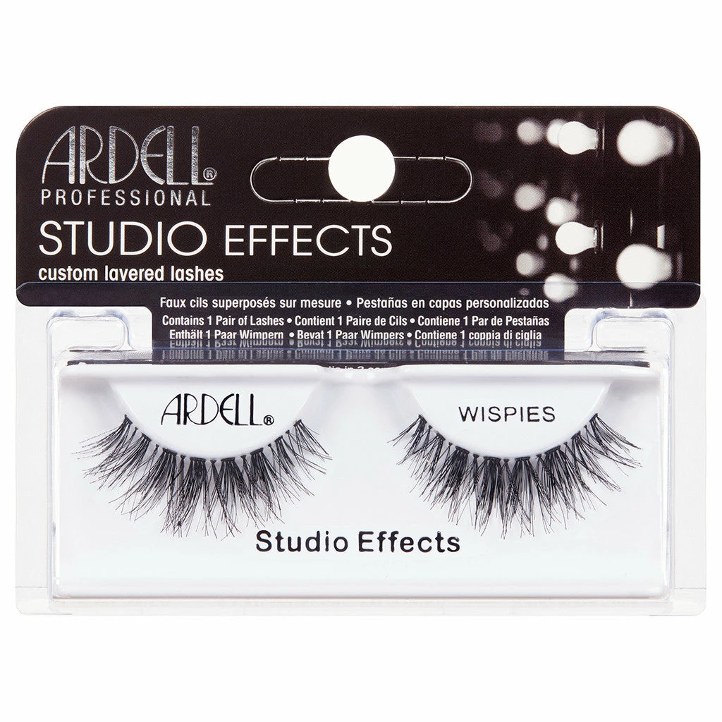 Ardell Studio Effects Lashes Black style Wispies have been designed for makeup artists! Featuring four flared individuals at the centre of the band, these lashes offer an eye-opening (and eye catching) appearance once applied. Custom layered lashes that look a little different from the rest aren’t easy to find, but these falsies fit the bill perfectly.