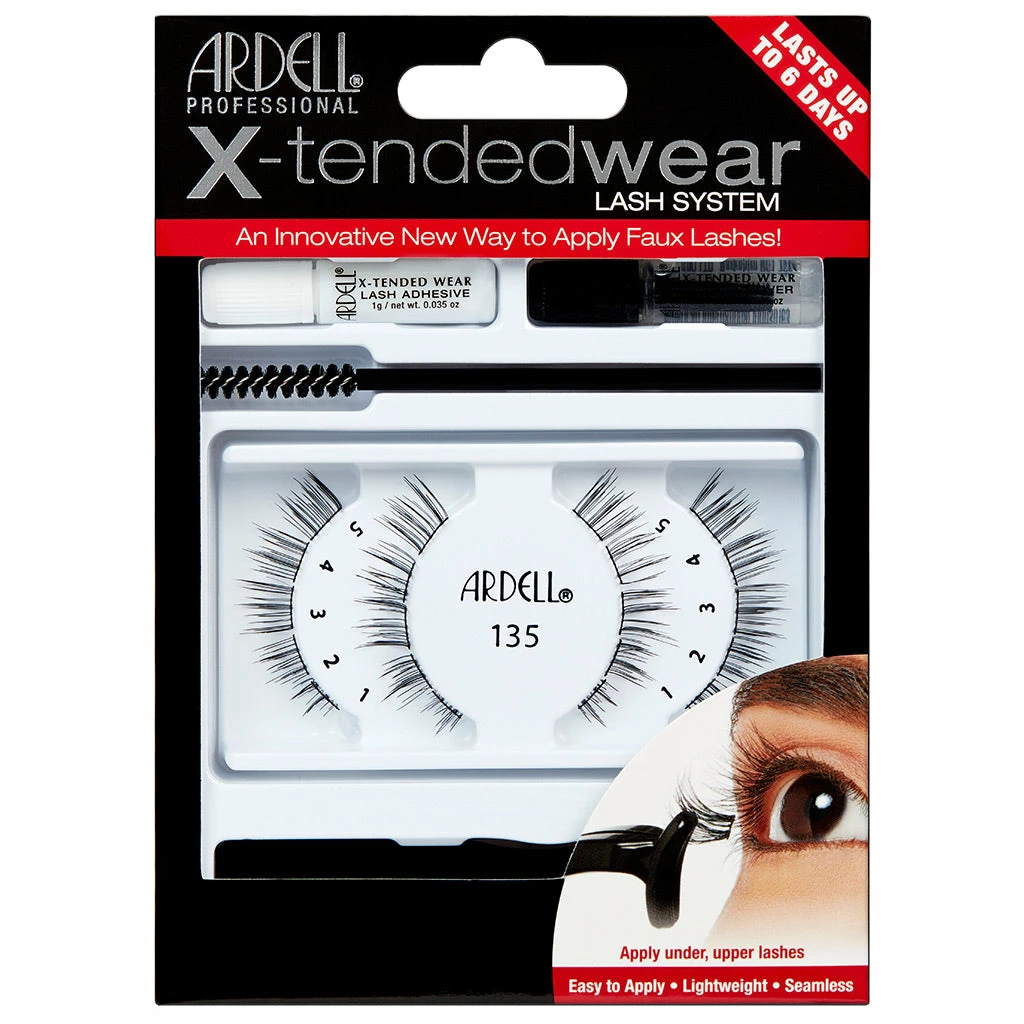 If you struggle to apply regular strip lashes, then the Ardell X-tended Wear Lash System in style 135 could be the kit for you! With this innovative kit, you apply the lash clusters under your natural lashes, rather than on top. Simply use the adhesive and remover included to perfectly place or remove the clusters and create a seamless blend using long, wispy lashes in a fuss-free application. The X-tended Wear Lash System is easy to apply and lasts up to 6 days.