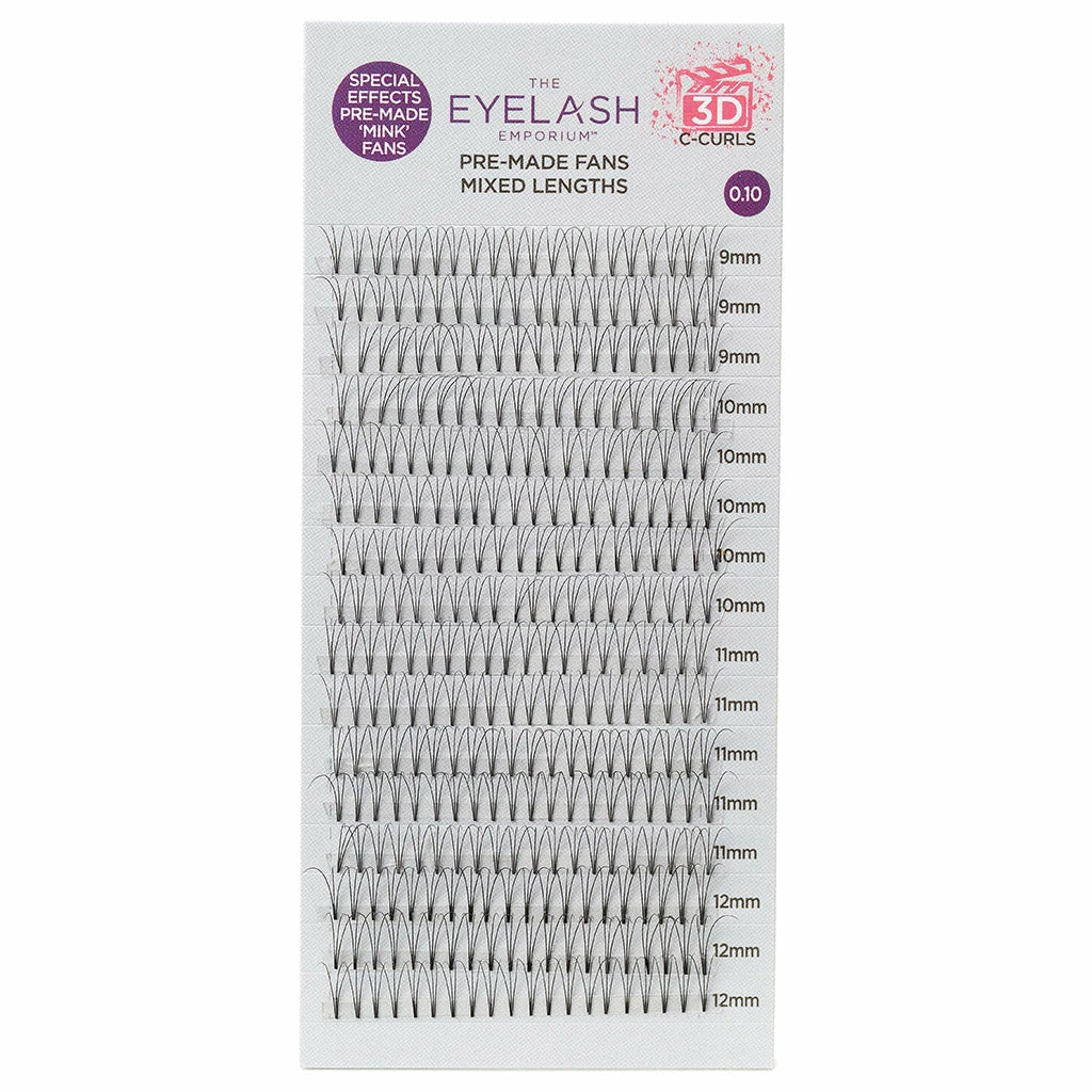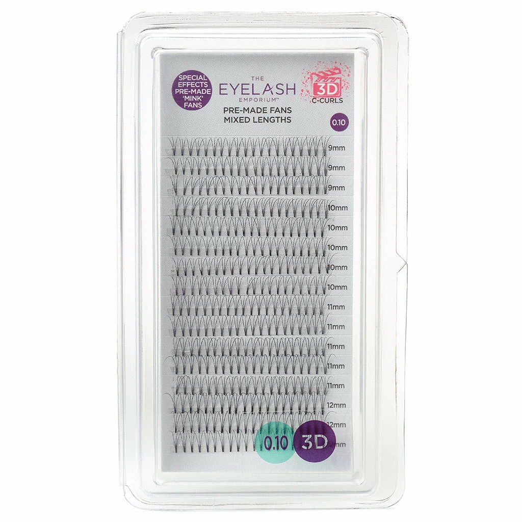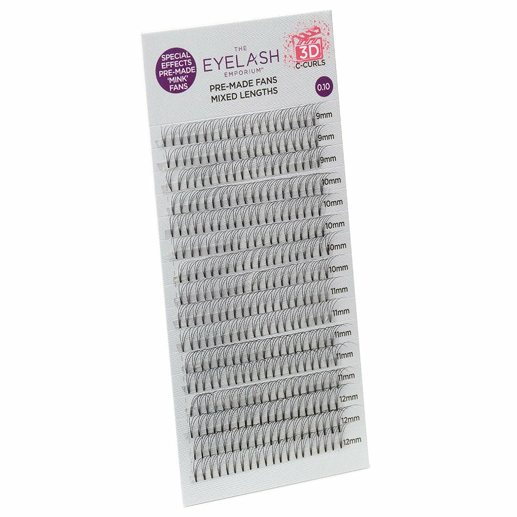 Create show-stopping, special effect lashes with the classic Eyelash Emporium 3D C Curls Pre-Made Fans. The fused technology creates the lightest weight fan, giving maximum impact to a variety of eye shapes and lash profiles.