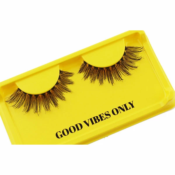 Boldface Lashes in style Good Vibes Only are multi-layered falsies that offer a light and natural look. Perfect for day to day wear with their soft volume and delicate texture. A denser base and light, feathery ends offer added depth and definition to enhance your natural lashes. These lashes are handmade using a premium blend of human and synthetic hair.