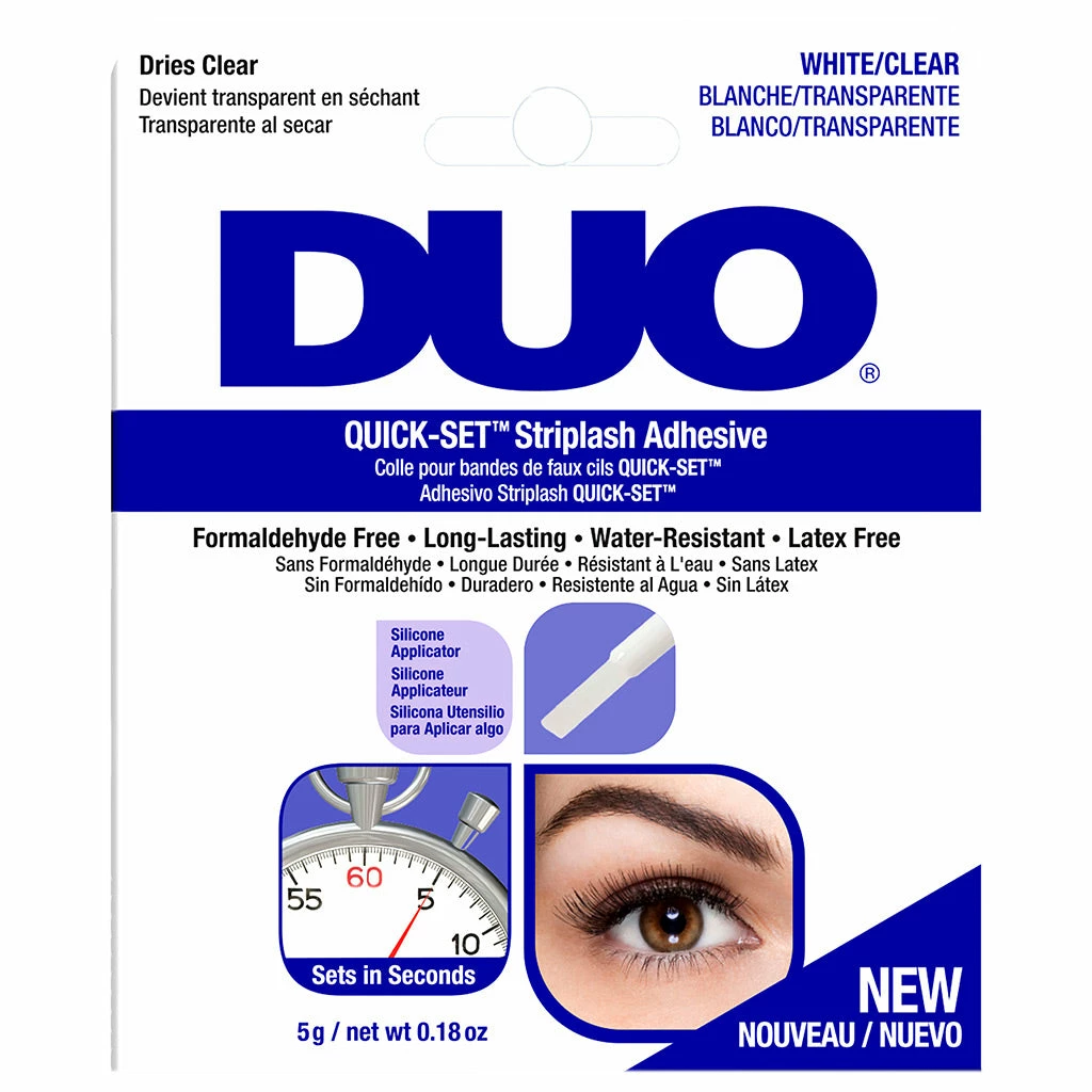 Perfectly apply your lashes in half the time with the amazing, brand new DUO Quick Set Strip Lash Adhesive in White/Clear! This latex-free and water-resistant formula delivers a firm, long-lasting hold of your favourite falsies, and sets in seconds allowing for a flawless application and effortless, professional results.