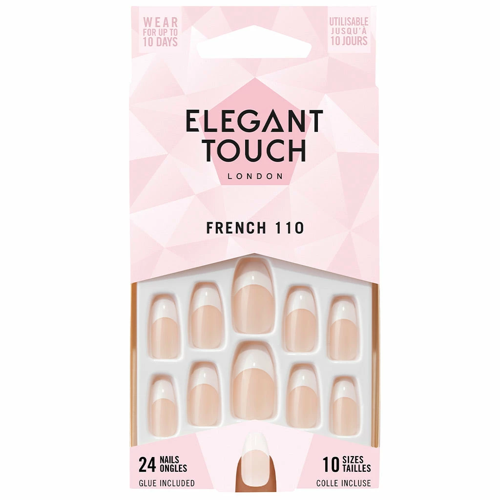 Each box of Elegant Touch False Nails in style French 110 contains 24 nails (in 10 sizes), plus one nail glue. Every order placed here at FalseEyelashes.co.uk comes with FREE 1st Class delivery in the UK when you spend £20+. Place your Elegant Touch false nails order with us now!