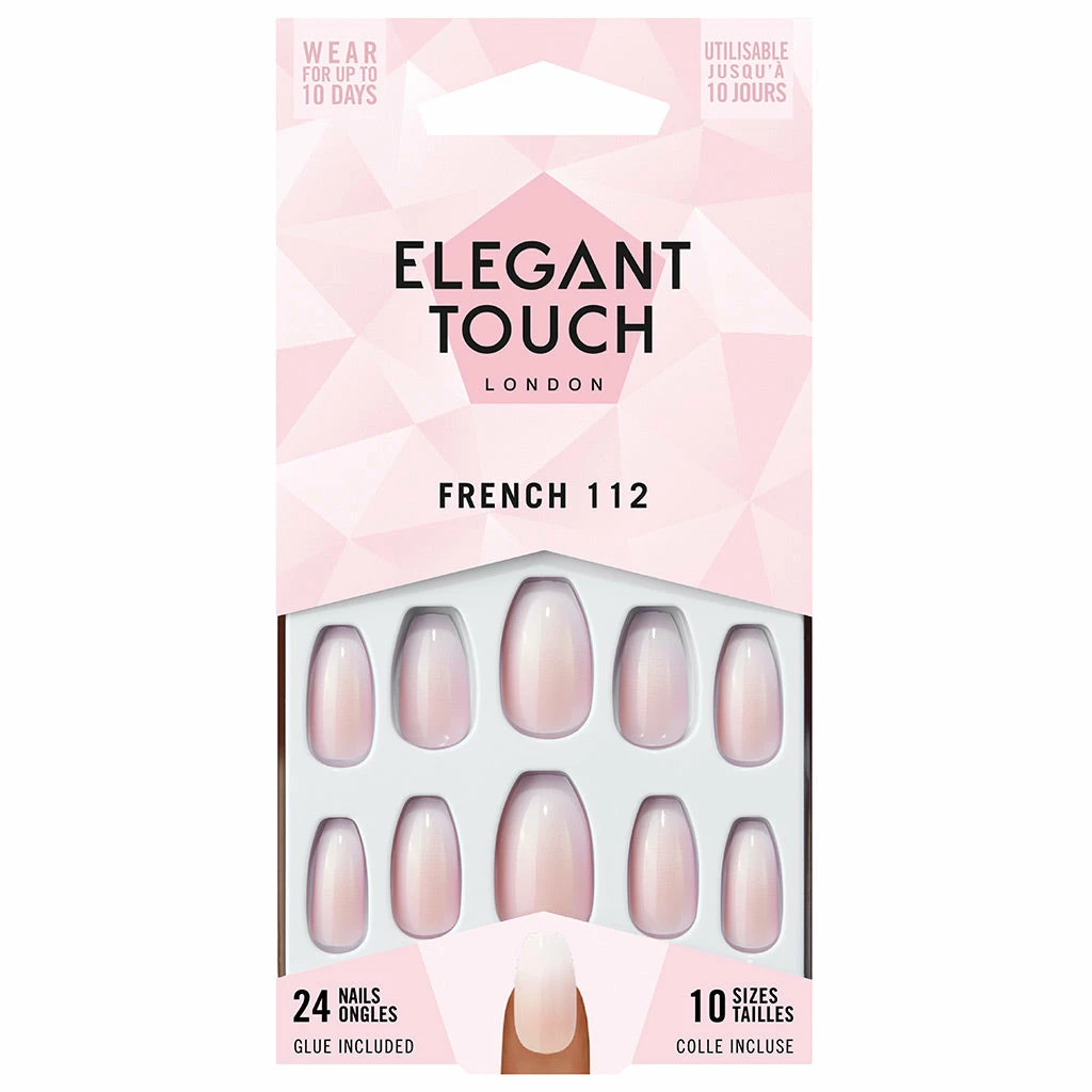 Each box of Elegant Touch False Nails in style French 112 contains 24 nails (in 12 sizes), plus one nail glue. Every order placed here at FalseEyelashes.co.uk comes with FREE 1st Class delivery in the UK when you spend £20+. Place your Elegant Touch false nails order with us now!
