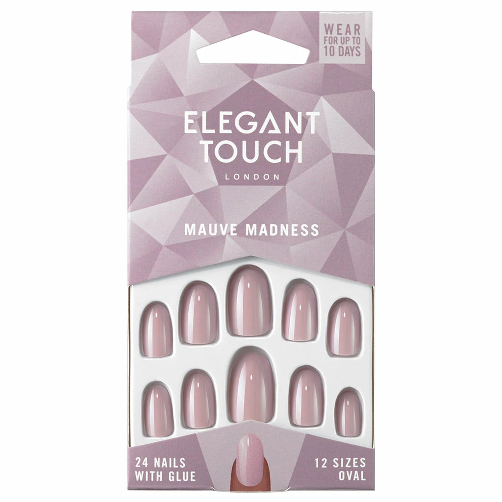 Elegant Touch False Nails in style Mauve Madness are oval-shaped and medium in length. Prepare to be obsessed – this gorgeous hue is maddeningly chic with a super glossy finish. For the perfect manicure in minutes, look no further than these Elegant Touch nails.