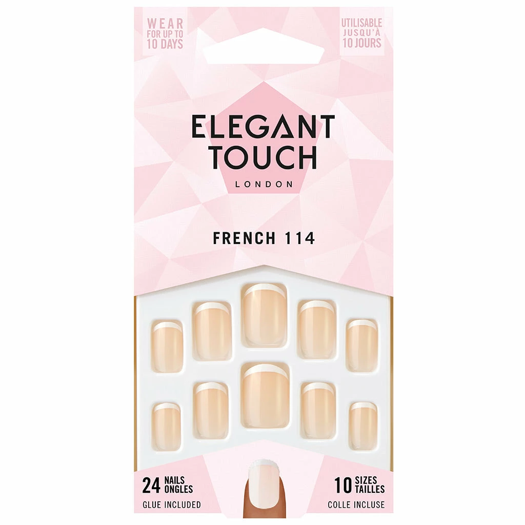 Each box of Elegant Touch False Nails in style French 114 contains 24 nails (in 10 sizes), plus one nail glue. Every order placed here at FalseEyelashes.co.uk comes with FREE 1st Class delivery in the UK when you spend £20+. Place your Elegant Touch false nails order with us now!