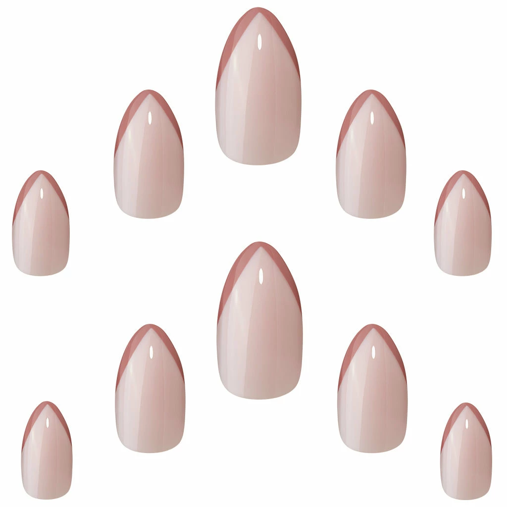 Radiate serious boss babe energy with Elegant Touch Luxe Looks Thanks A Latte false nails. These stunning nails come in a gorgeous creamy, neutral hue. They boast pointed French tip details in a rosy, cocoa shade. This short stiletto mani is a neutral necessity!
