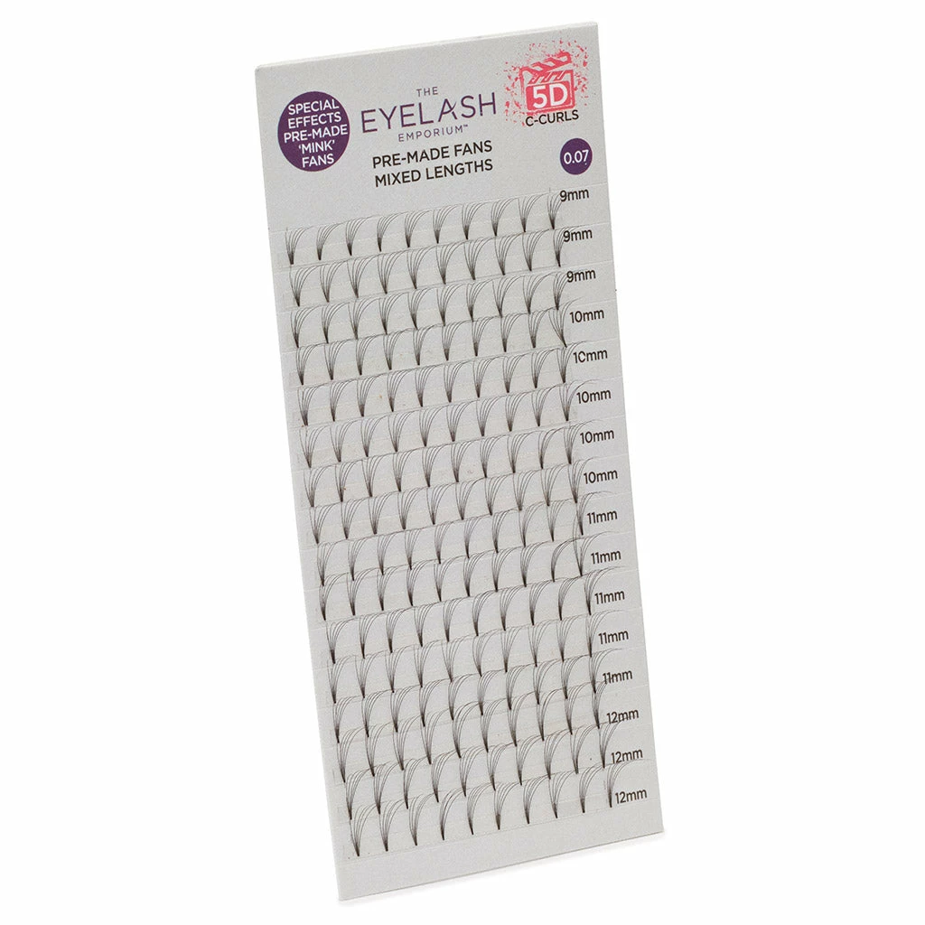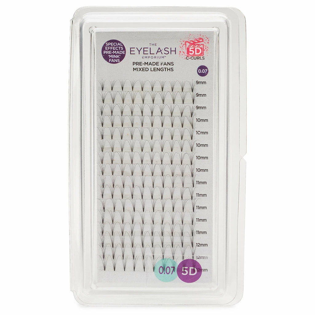 Create show-stopping, special effect lashes with the classic Eyelash Emporium 5D Curls Pre-Made Fans. The fused technology creates the lightest weight fan, giving maximum impact to a variety of eye shapes and lash profiles.