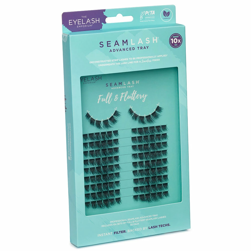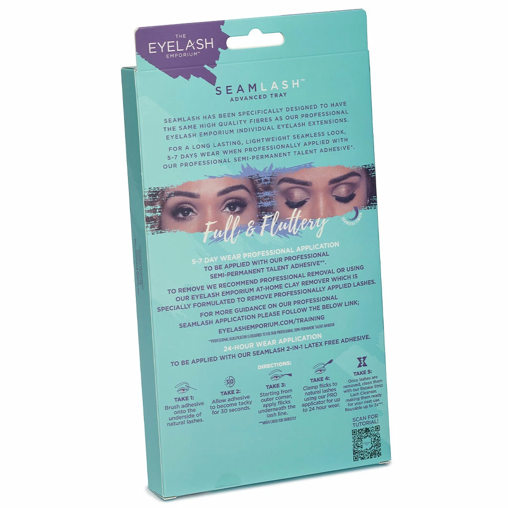 Each Eyelash Emporium Seamlash Full and Fluttery Advanced Tray contains enough for 10 pairs of lashes. We stock the full Eyelash Emporium Seamlash range, and every order placed here at FalseEyelashes.co.uk comes with FREE 1st Class delivery in the UK when you spend £20+. Place your Eyelash Emporium Seamlash order with us now!