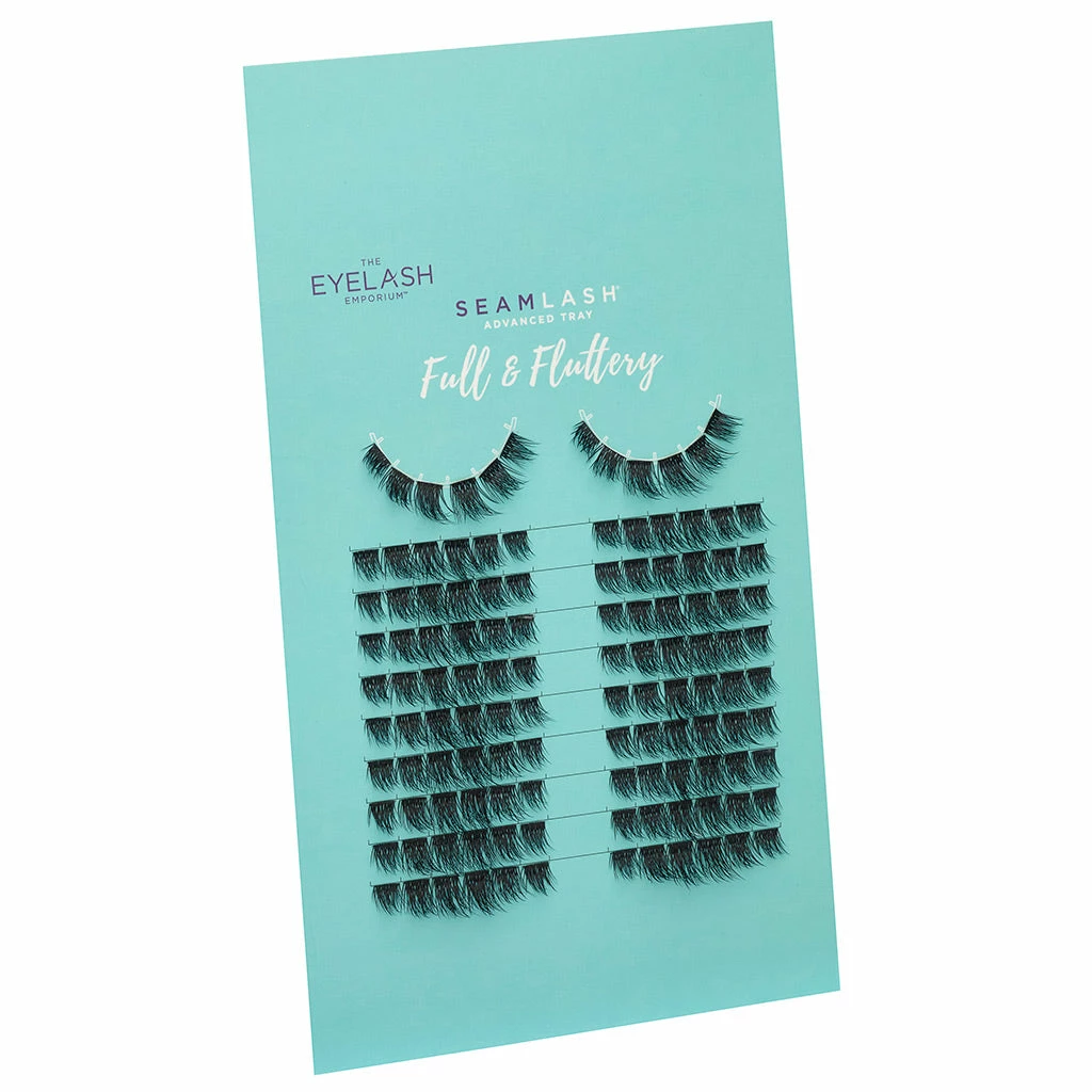 The Eyelash Emporium Seamlash Full & Fluttery Advanced Tray contains 10 sets of deconstructed strip lash flicks to be applied underneath the lash line. Seamlash has been designed to offer the same premium look as professional eyelash extensions. Full & Fluttery lashes offer full, fluffy voluminous flicks of varying lengths, to create your own custom lash look for a bold, glam appearance.
