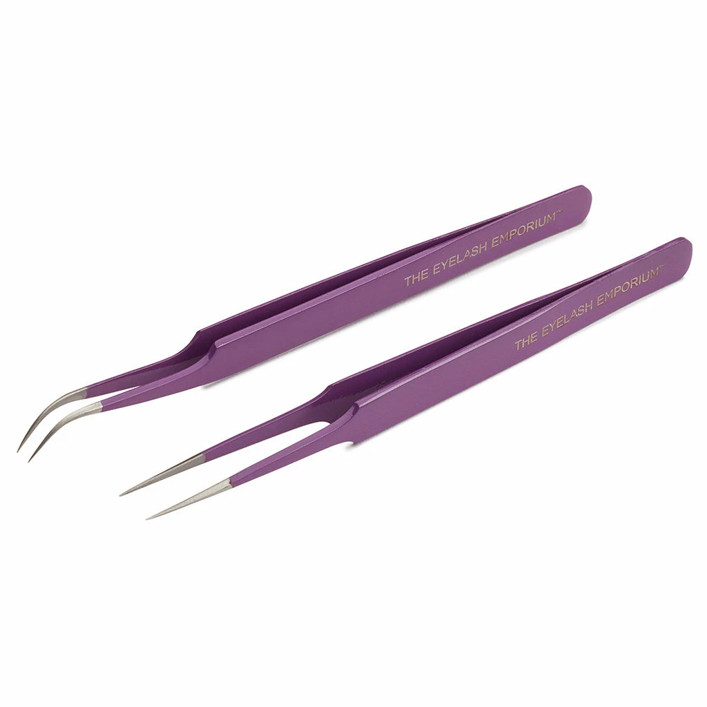The Eyelash Emporium Set Piece Straight and Curved Tweezer Set is perfect for classic and semi-permanent lash application. These high quality lash tools are made from surgical grade stainless steel.