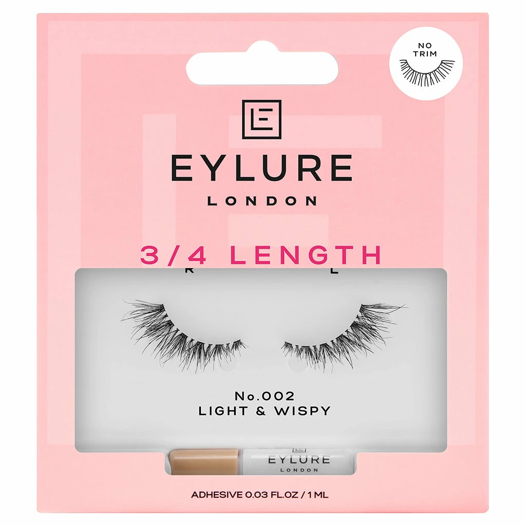 Each box contains one pair of Eylure 3/4 Length Lashes in style 002. Lash glue is also included. We stock a huge range of Eylure false eyelashes and every order placed here at FalseEyelashes.co.uk comes with FREE 1st Class delivery in the UK when you spend £20 or more. Buy your Eylure lashes now!
