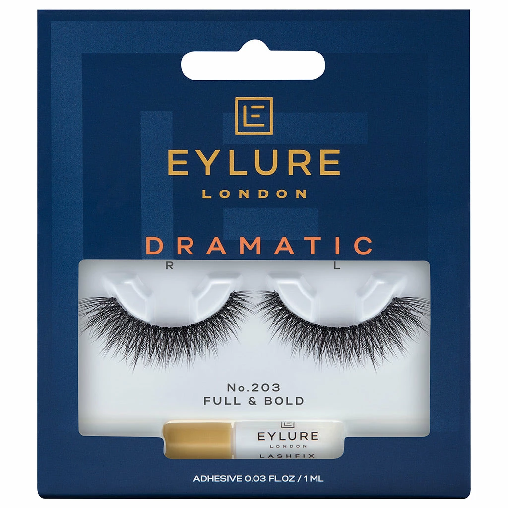 Each box contains one pair of Eylure Dramatic Lashes in style 203. One small lash glue is also included. Every order placed here at FalseEyelashes.co.uk comes with FREE 1st Class delivery in the UK when you spend £20 or more. Buy your Eylure Lashes now!