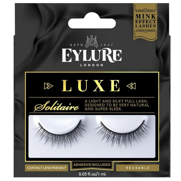 Eylure The Luxe Collection Lashes in style Solitaire are super light and silky – for a natural, sleek appearance once applied. These luxury lashes are crafted from a high quality, silk effect fibre. They’re 100% Cruelty-Free, and they won’t break the bank either. These lashes will give the perfect edge to a day to day look.