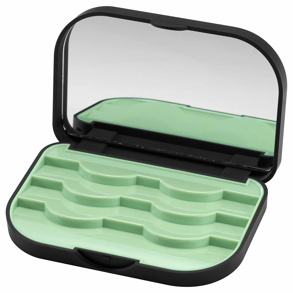This Eylure x Skinnydip Lash Case offers a stylish Tropical design. Supplied in exclusive black, this lash case designed by Skinnydip fits perfectly in your makeup bag or box, to keep your favourite strip lashes in shape at all times. This hard plastic lash case also makes application a breeze, thanks to the mini mirror in the lid.