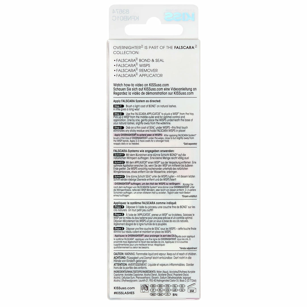 Each pack contains one Kiss Falscara Overnighter (5.2g). Kiss Falscara lashes/wisps and Bond and Seal are not included and are sold separately. It is recommended to complete a patch test 48 hours before use.