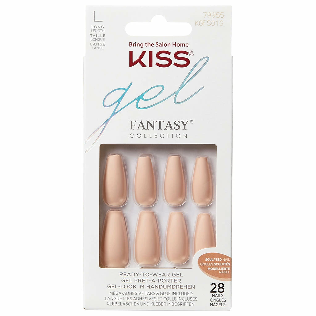Kiss False Nails Gel Fantasy Sculpted Nails in style 4 The Cause are long length, coffin and stiletto-shaped nails. Presented in a stunning nude hue, these ready to wear gel effect nails look incredible once applied. For a flawless mani at home – without the expense or hassle of visiting the salon – these false nails can’t be beaten. Kiss false nails are durable and last for up to 7 days.