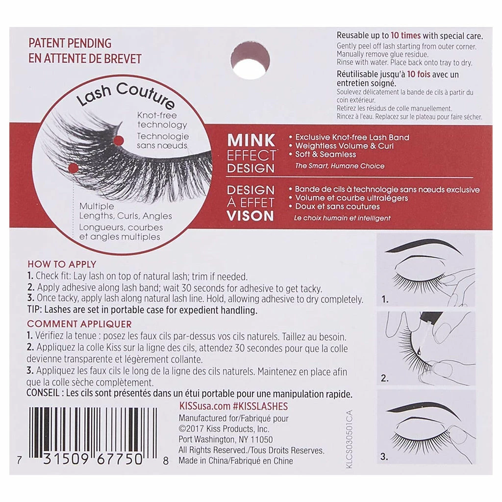 Each box contains one pair of Kiss Lash Couture Faux Mink Collection false lashes in style Midnight. Lash glue is also included. Get FREE 1st Class delivery in the UK when you spend £20 or more right here at FalseEyelashes.co.uk. Place your Kiss Lashes order with us now!