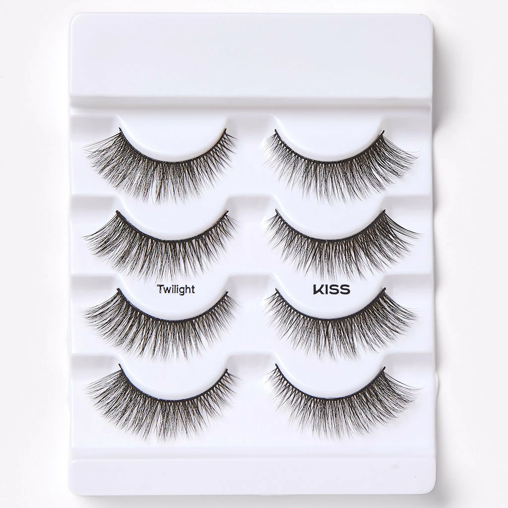 Each box of Kiss Lash Couture Faux Mink Collection Twilight (Multipack) contains four pairs of lashes plus one small glue. Every order placed here at FalseEyelashes.co.uk comes with FREE 1st Class delivery in the UK when you spend £20 or more. Buy your Kiss Lashes now!