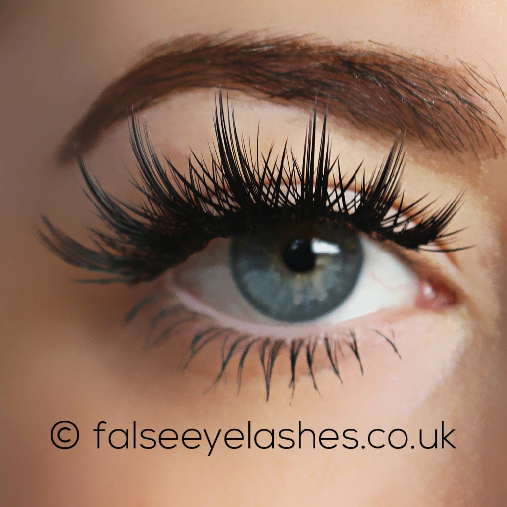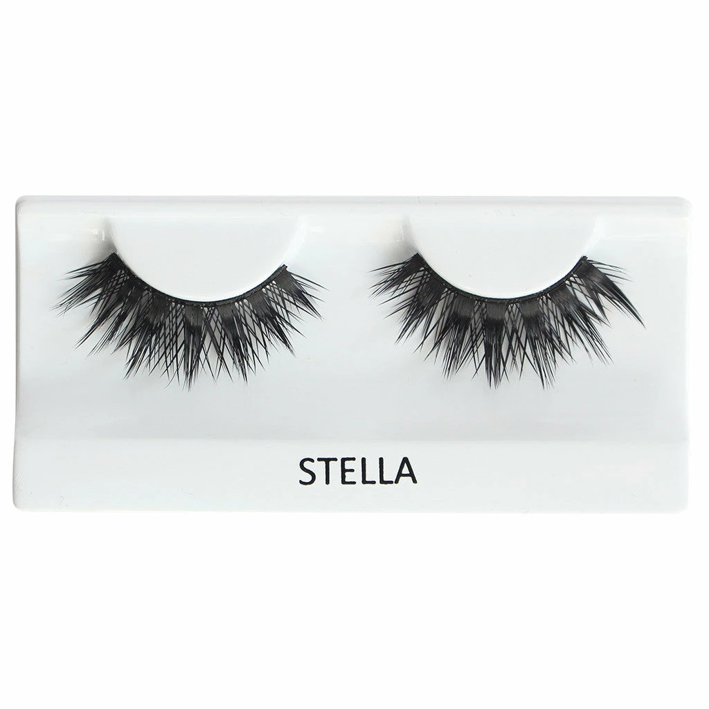Intensify your makeup look with the incredible KoKo Lashes in style Stella. Boasting an extremely dramatic, voluminous design these fab falsies gradually increase in length towards the outer edge of each eye, for a winged out finish. Consisting of clusters of dense lashes, layered between finer, criss-crossed hairs; this style is sure to make you stand out. They provide a stunning, full and feathery texture and flare outwards for an amazing, eye enhancing effect.