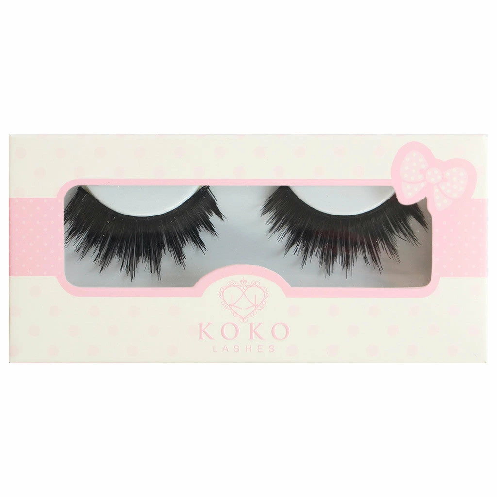 KoKo Lashes in style Vixen offer a feathery, flared out design that adds length and volume to your natural lashes in an instant. The increased density at the base of the lash defines your eyes, and the blend of longer, and shorter lashes create a beautiful, edgy appearance and flawless textured finish.