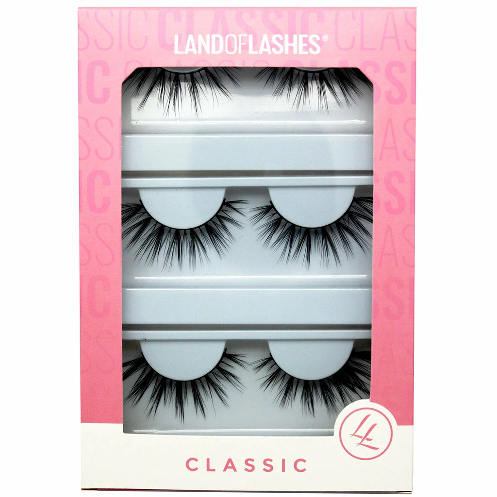 Land of Lashes Faux Mink Lashes Multipack in style Fierce contains three pairs of stunning falsies! This style boasts eye-opening length and beauty. A blend of finer, lengthening clusters creates the ultimate stand-out lash style. The longer outer edges elongate the eye like a dream.