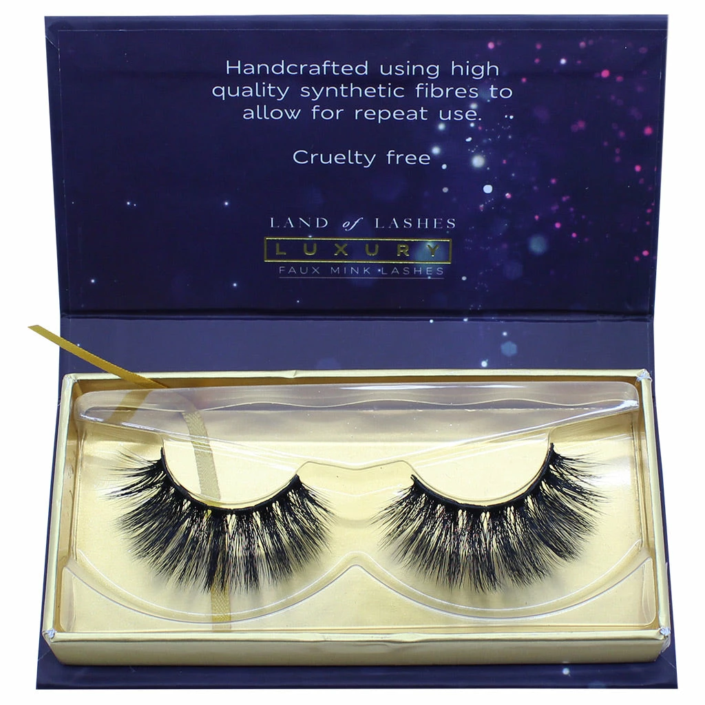Each box contains one pair of Land of Lashes Luxury Lashes in style Siren. Please note these lashes don’t come with adhesive, but it can be purchased separately on our website. All orders placed here at FalseEyelashes.co.uk come with FREE 1st Class delivery in the UK when you spend £20 or more. Treat yourself and place your order with us right now!
