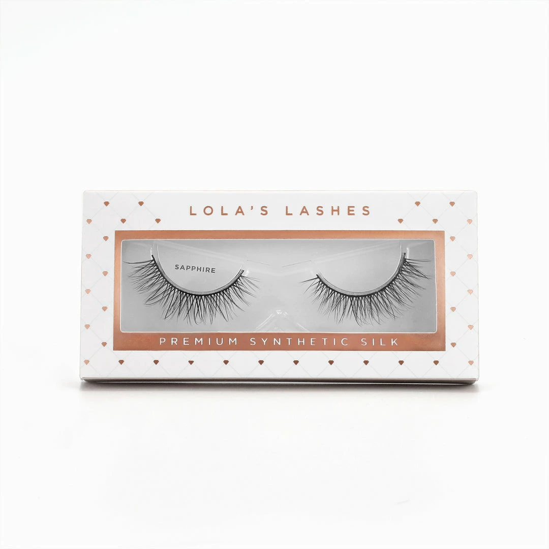 Lola’s Lashes Strip Lashes in style Sapphire offer everyday glam and a classic, polished lash look once applied. Delicate strands of hair deliver the appearance of individual lash extensions – but without the hassle (or expense!) Sapphire Lola’s Lashes boast the ideal amount of length for daytime wear, and the right amount of drama for evening wear.