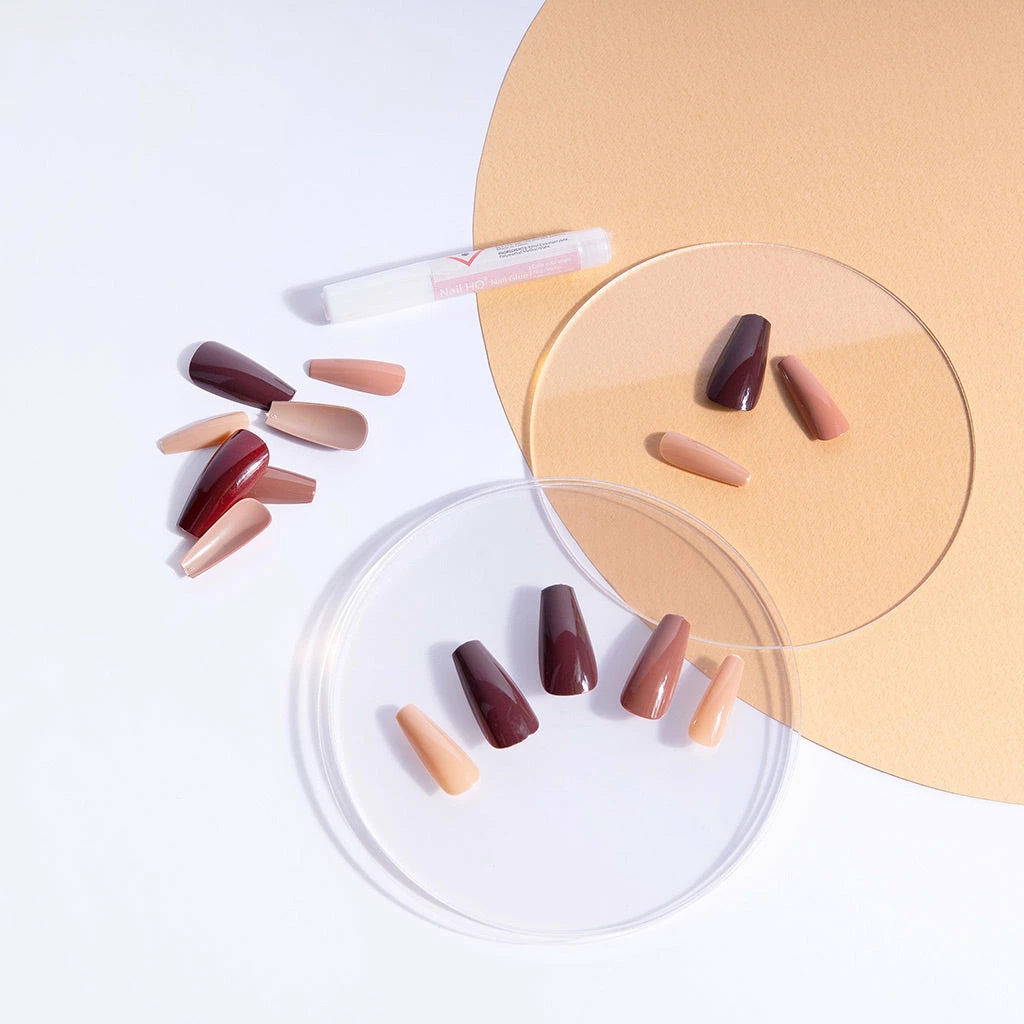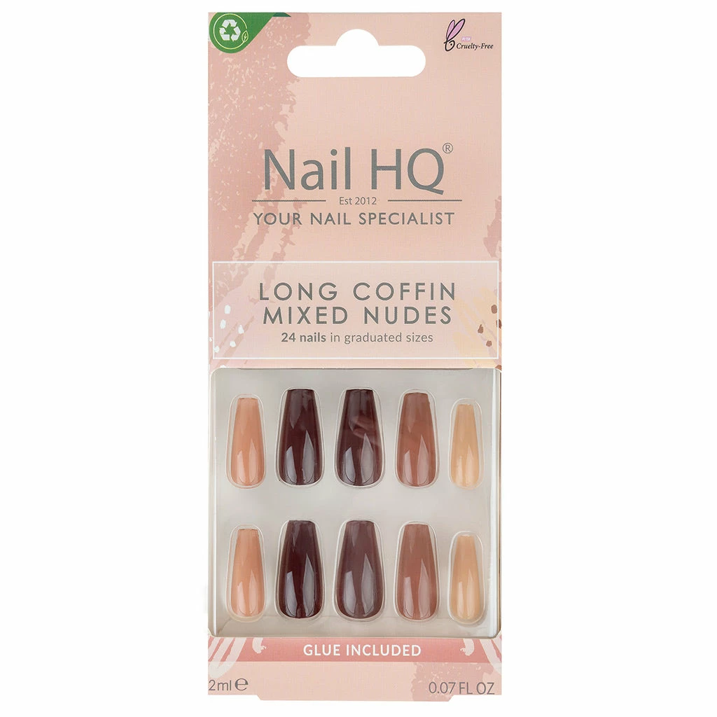 These Nail HQ False Nails are long and coffin-shaped, they offer a modern twist on the classic nude manicure thanks to a range of mixed nude shades. The perfect nails for everyday wear. If you’re looking for nails that offer a modern and flawless manicured look without the expense of visiting a salon, then your search is over.