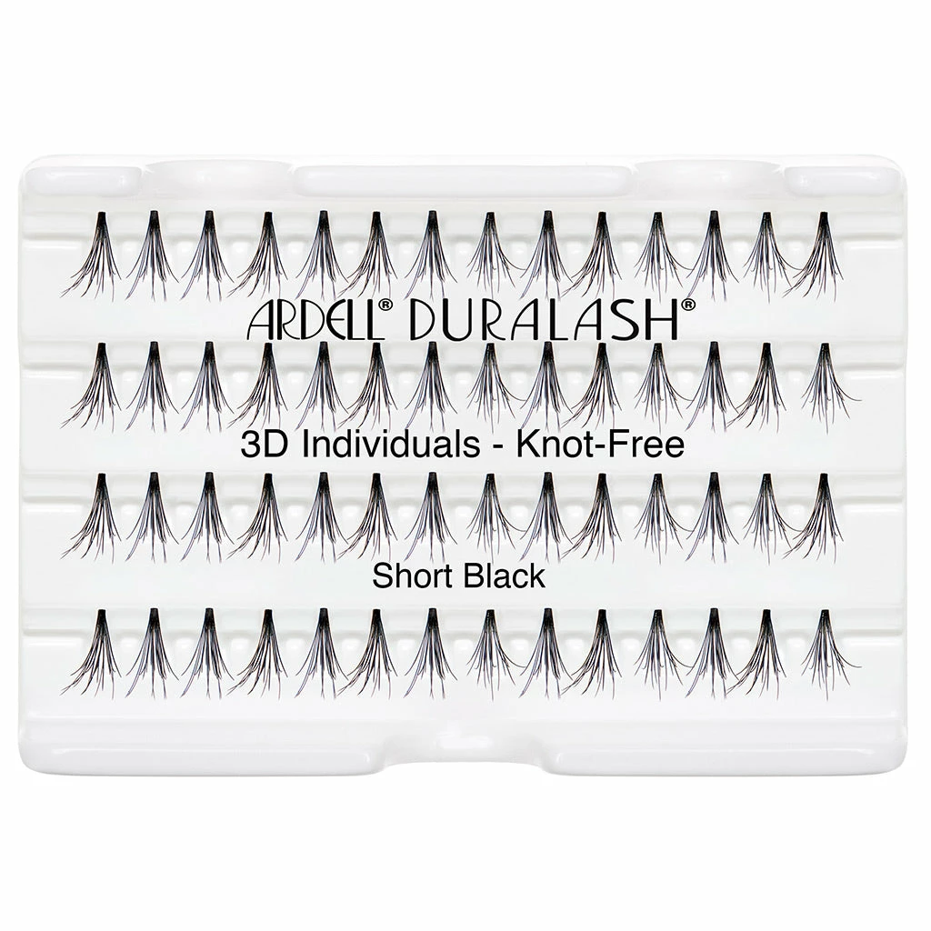 Ardell Duralash 3D Individuals Knot Free in Short Black boast criss-cross, layered clusters. These high quality flare lashes are ideal for creating a completely custom look! Incredibly versatile, it’s easy to customise length and volume – while you can also layer, accent or fill in with the flares too.