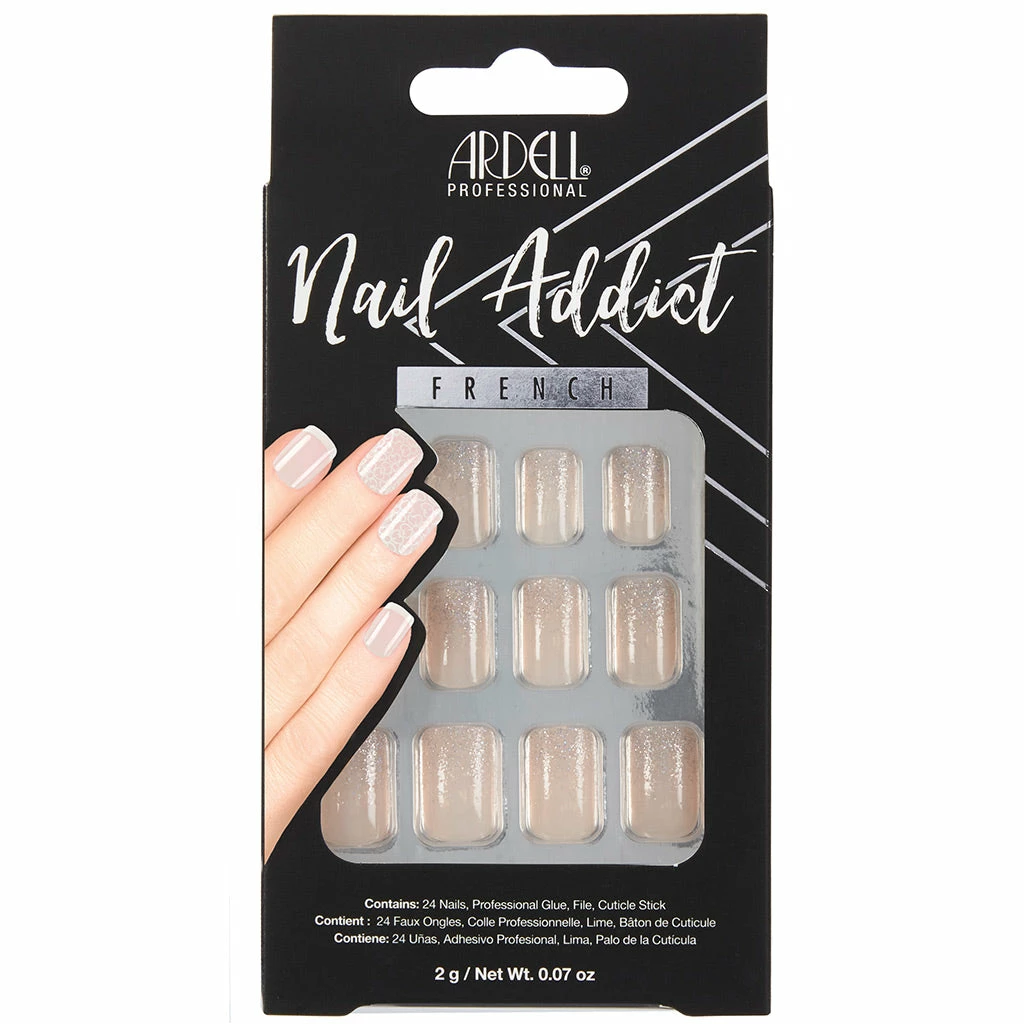 Each box of Ardell Nails Nail Addict French False Nails in French Glitter contains 28 nails in assorted sizes, nail glue (2g), a mini nail file and a mini cuticle stick. Every order placed here at FalseEyelashes.co.uk comes with FREE 1st Class delivery in the UK when you spend £20 or more. Don’t delay, place your Ardell nails order with us now!