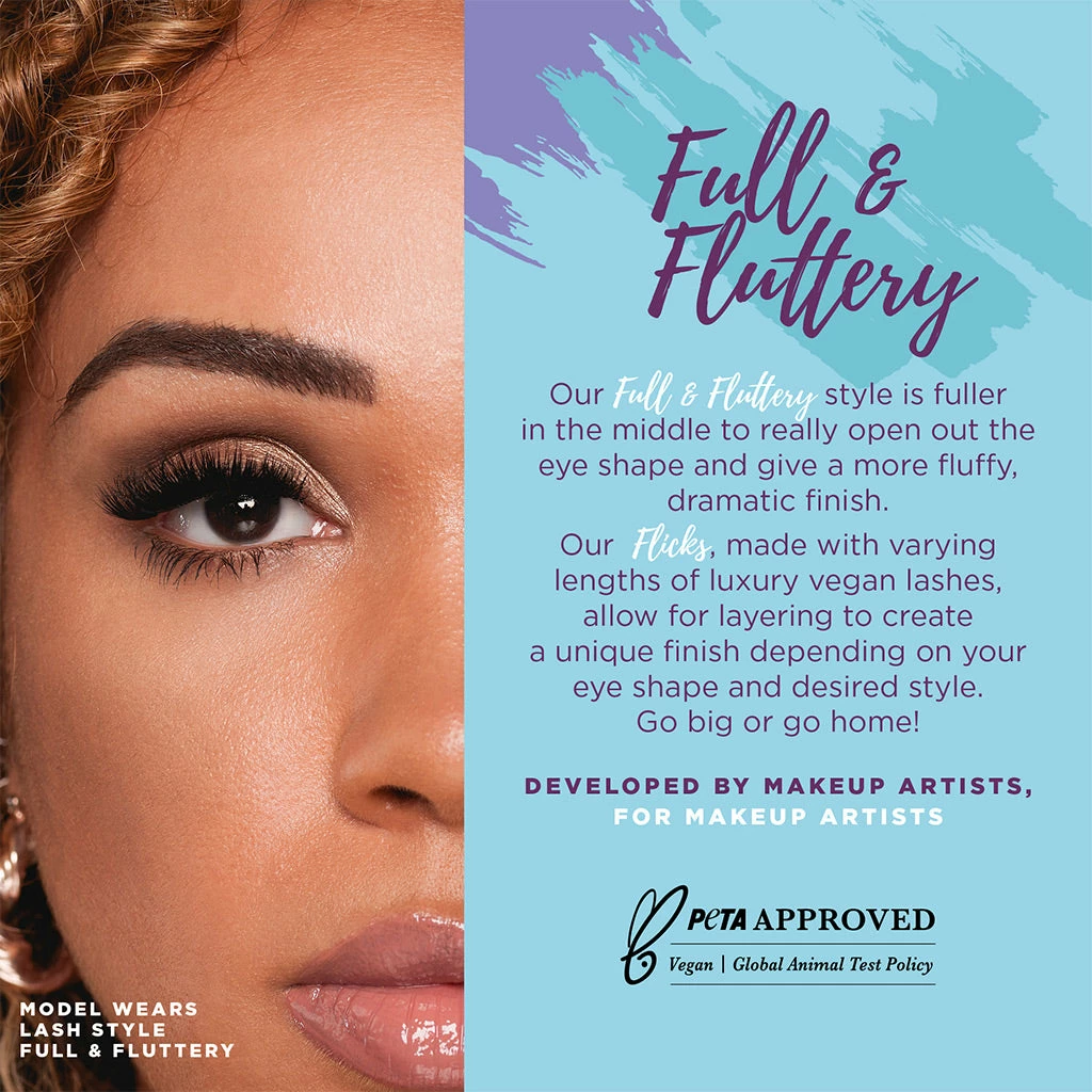 The Eyelash Emporium Seamlash Full and Fluttery Refill Pack contains 2 full sets of deconstructed strip lash flicks, allowing you to create a custom lash look. Full & Fluttery lashes offer voluminous flicks of varying lengths, to create a fluttery and glam appearance once applied. Can be worn so lashes are longer in the center, to open up the eye beautifully. Vegan-friendly with a 3D faux mink effect.