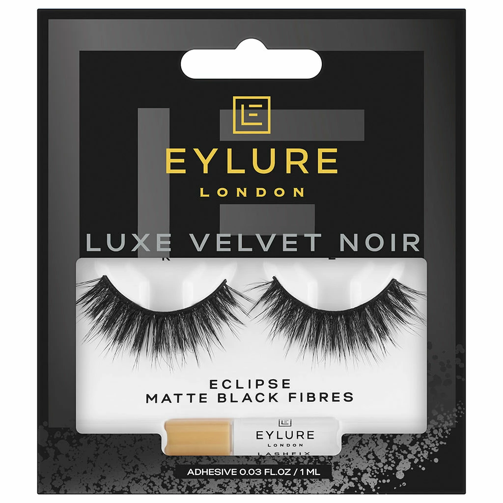 Eylure Luxe Velvet Noir Lashes in style Eclipse offer a dark, dramatic and fluttery finish! These fab lashes are composed from matte black fibers of varying lengths that have been layered together, to create intense volume and definition. Style Eclipse is a luxury lash that will enhance any glam makeup look.