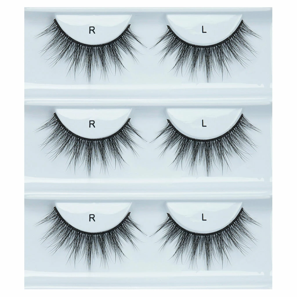 Each box contains three pairs of lashes, lash glue is not included but we do sell it separately. Every order placed here at FalseEyelashes.co.uk comes with FREE 1st Class delivery in the UK when you spend £20 or more. Buy your Invogue lashes now!