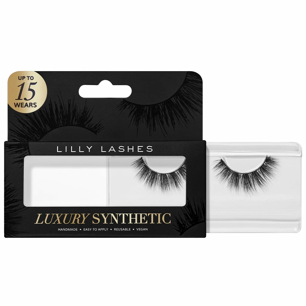 Lilly Lashes Luxury Synthetic eyelashes in style Icy offer gorgeous length and volume. Handmade using full, bold clusters of superfine wispy hairs that are longer in the centre to create a wide-eyed effect once applied.