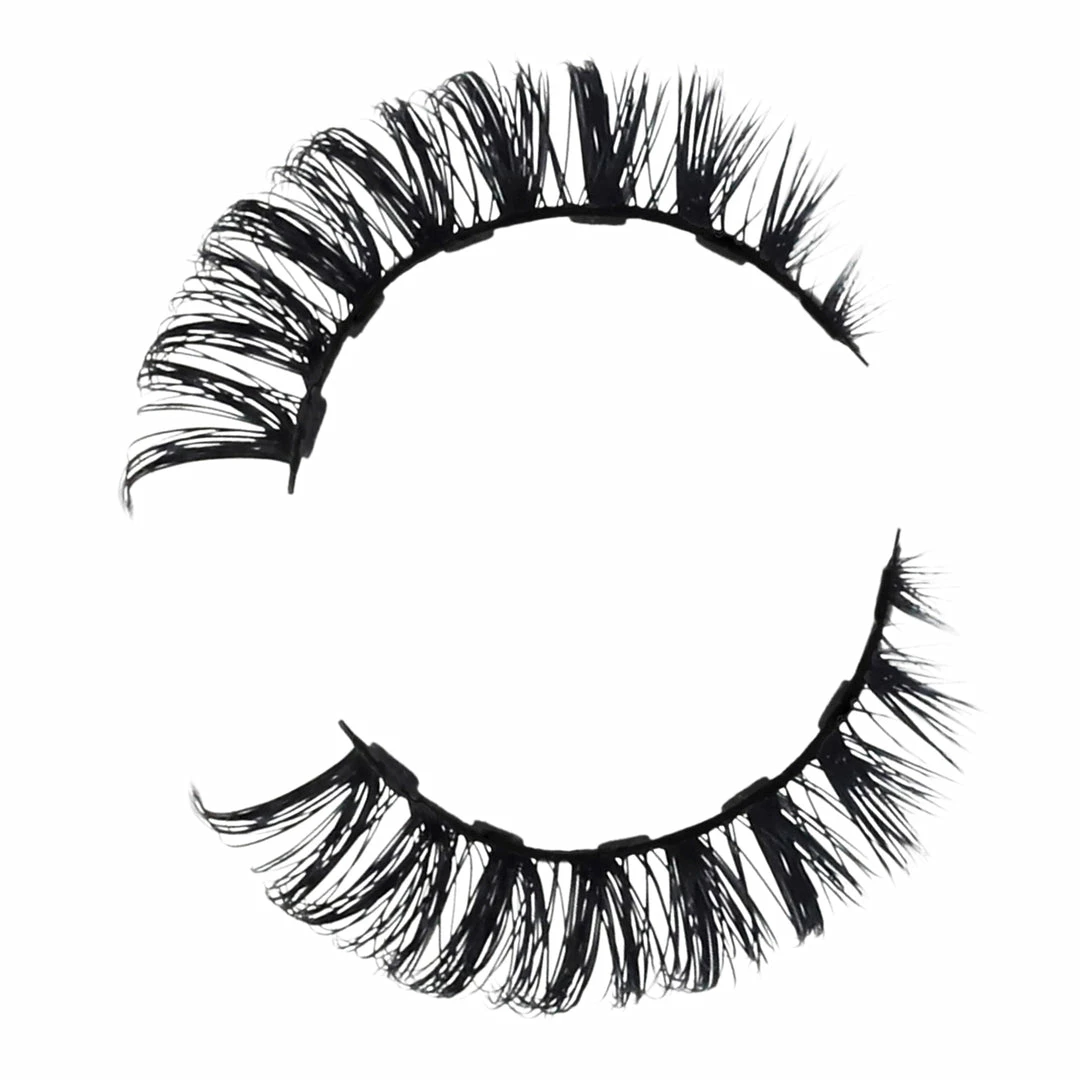 Lola’s Lashes Magnetic Lashes in style Icons Only promote a flattering cat-eye effect once applied. Designed and handmade with thick V-shaped lash clusters that have been evenly spaced along the lash band. These falsies create iconic drama and texture with a thicker, curled outer corner.