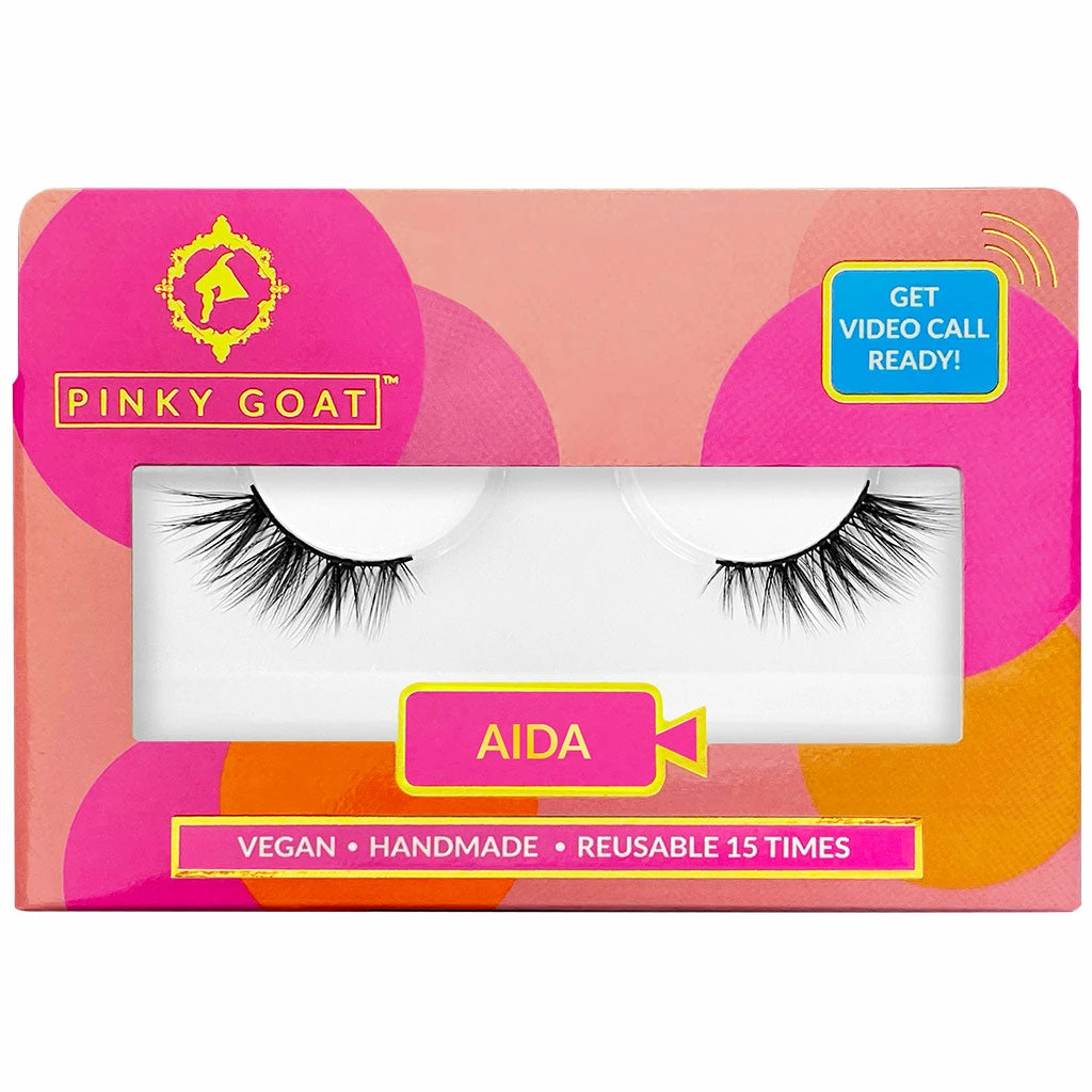 Pinky Goat Lashes in style Aida offer a boost of length, paired with fluffy and full outer corners. This multi-layered lash will have you be video call ready in no time at all. Aida lashes by Pinky Goat are Vegan-friendly, cruelty-free and handmade using synthetic hairs.