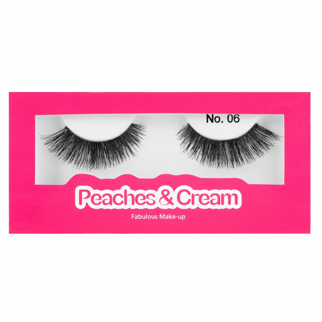 Each box contains one pair of Peaches and Cream Lashes in Style No. 6. Adhesive is not included; however, we do sell it separately. Every order placed here at FalseEyelashes.co.uk comes with FREE 1st Class delivery in the UK when you spend £20 or more. Place your Peaches and Cream order now!
