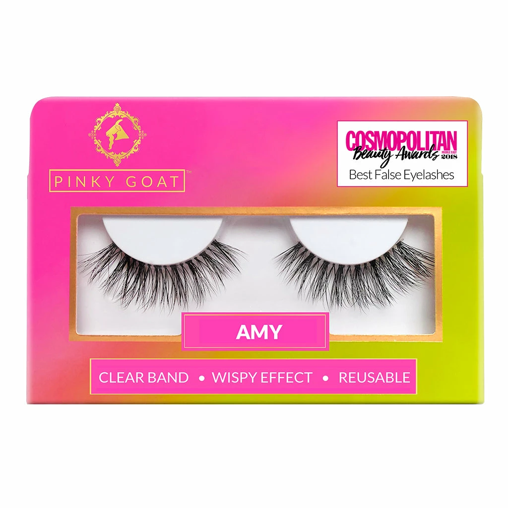 Pinky Goat Lashes in style Amy are high quality, faux mink effect lashes. This super lightweight style is perfect for wear day or night – they’re the only pair of falsies you need in your makeup bag this summer. Reusable and easy to apply, these lashes have a clear band for a seamless blend.