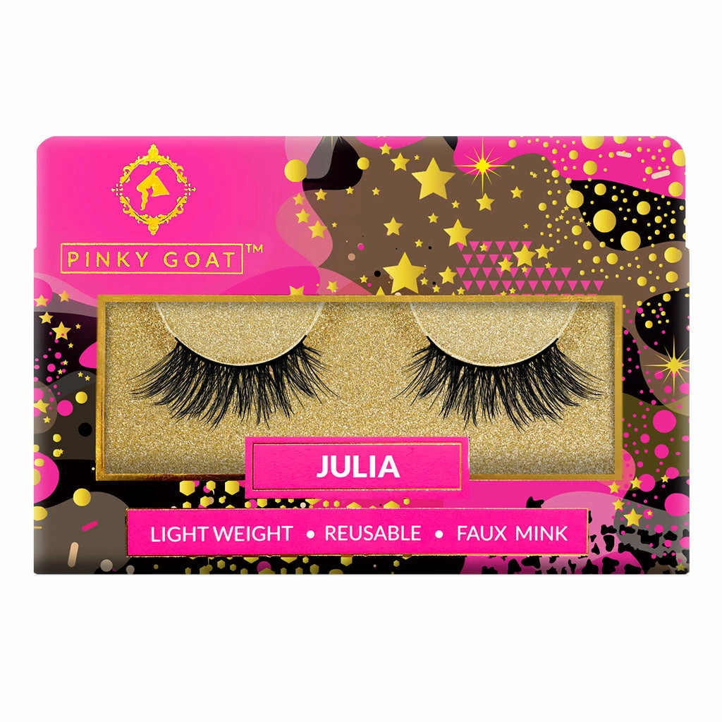 Pinky Goat Natural Lashes in style Julia are half lash, faux mink falsies that are sure to turn heads wherever you go! These lashes are reusable if applied and removed carefully. These half lashes boast a dramatic, criss-cross style and tapered length towards the outer corner of the eye.