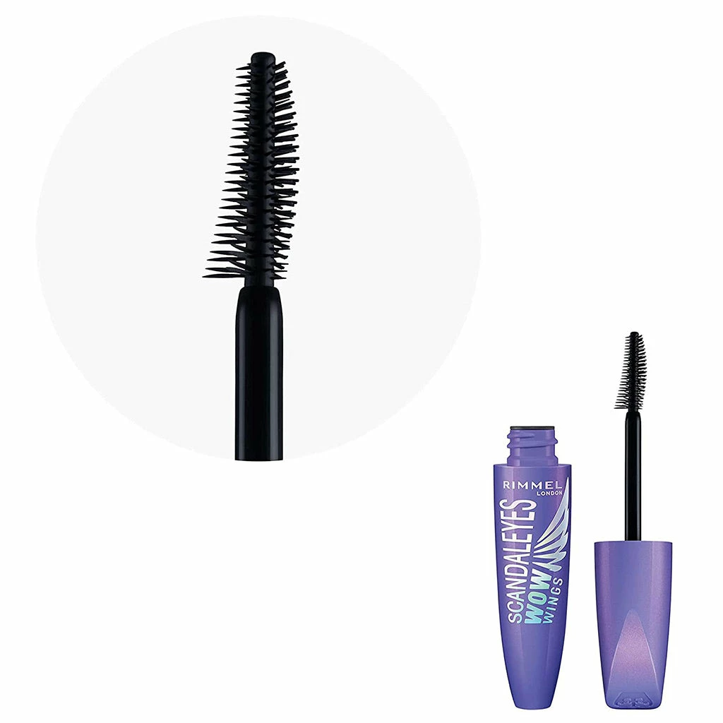 Rimmel Scandaleyes Wow Wings Mascara 001 Black (12ml) offers instant WOW! With a unique, 2-side brush this mascara helps you load up your lashes using the winged side, while flaring them out using the curved side. Providing up to 11x the volume, this is the only mascara to use if you’re looking for an ultra-volumised and winged-out lash effect.