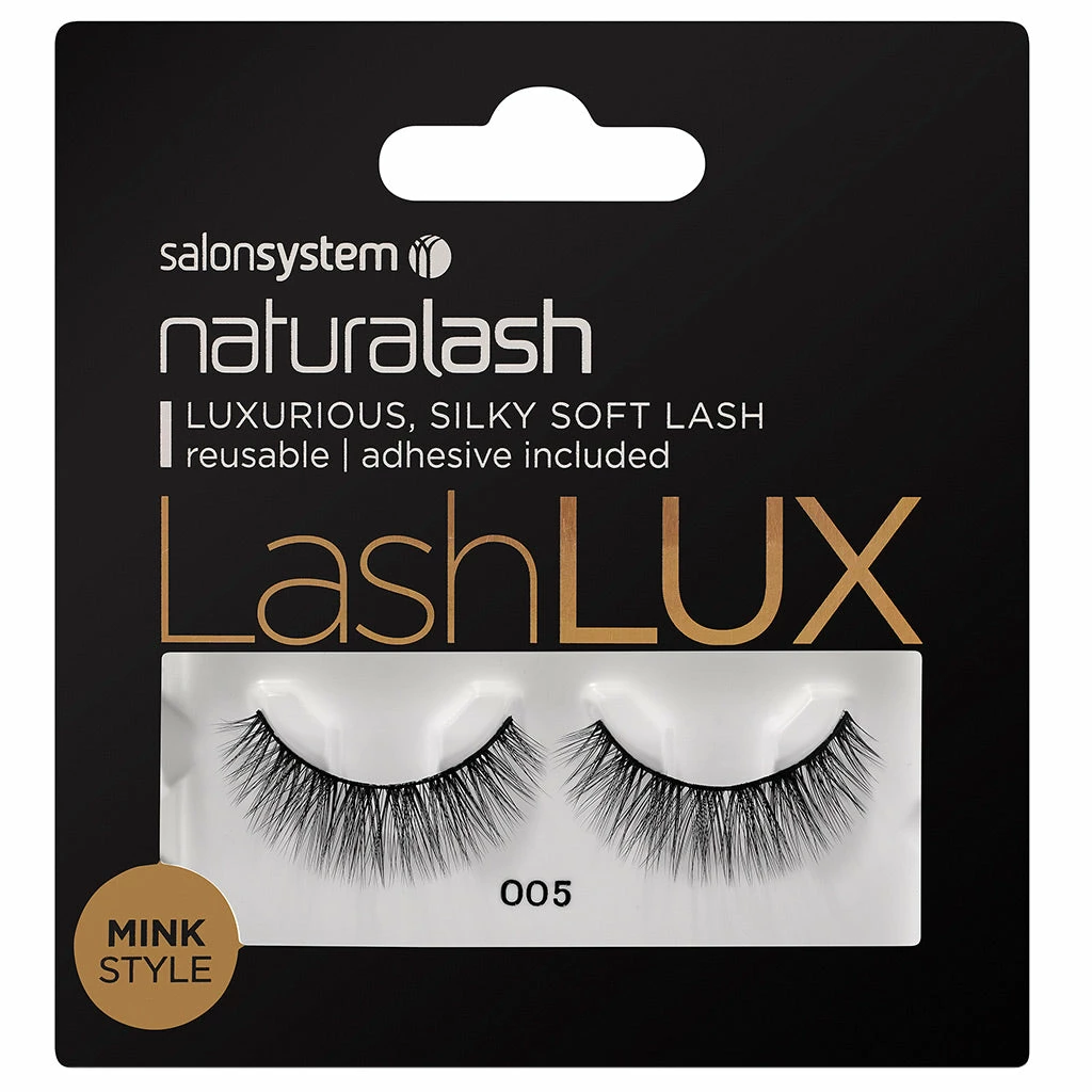 Salon System Naturalash LashLUX 005 eyelashes provide just the right amount of density and length, for a timeless and classy finish. These high quality false eyelashes are luxuriously soft and silky – they’re also reusable and come complete with lash glue.